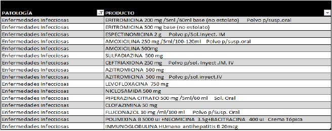 El hecho de no haber comprado estos medicamentos, reduce la capacidad del hospital de proveer el tratamiento adecuado en 18 patología distintas, las cuales se detallan a continuación, con sus respectivos medicamentos |13|: