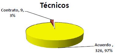 Para finalizar con las ilustraciones gráficas, a continuación se muestran la distribución funcional de los recursos humanos y su estatus laboral: