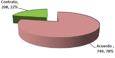 El total de transacciones en el primer semestre 2012, fue de 757, entre documentos con presupuesto y sin este, lo que representa en Lempiras, L. 230, 622,799.